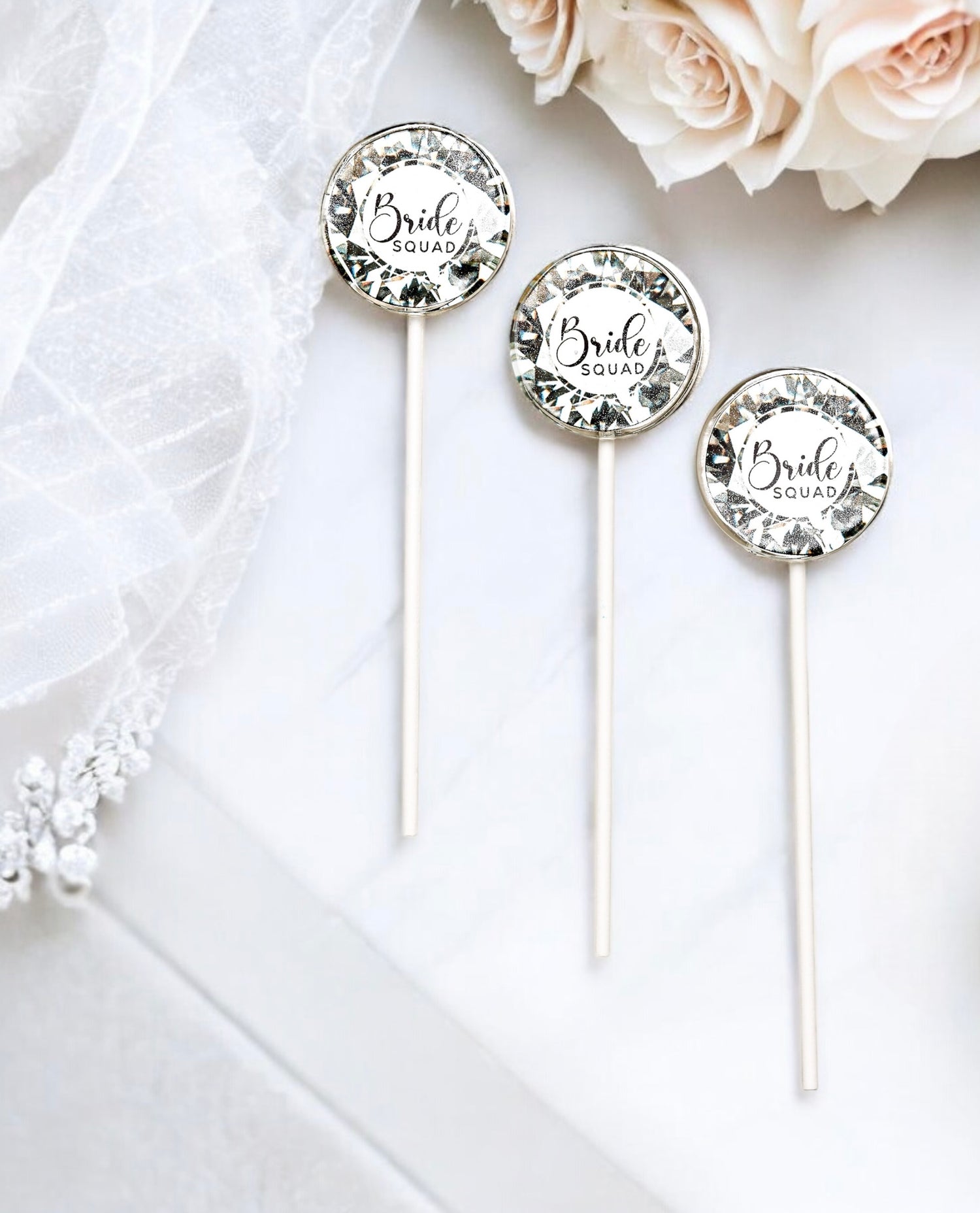 Introducing our Bridal Lollipops, the perfect sweet treat to celebrate your special day with a touch of elegance and sparkle! Each lollipop is meticulously handcrafted from high-quality isomalt, offering a clear, glossy finish that enhances the luxurious look of these delightful confections.